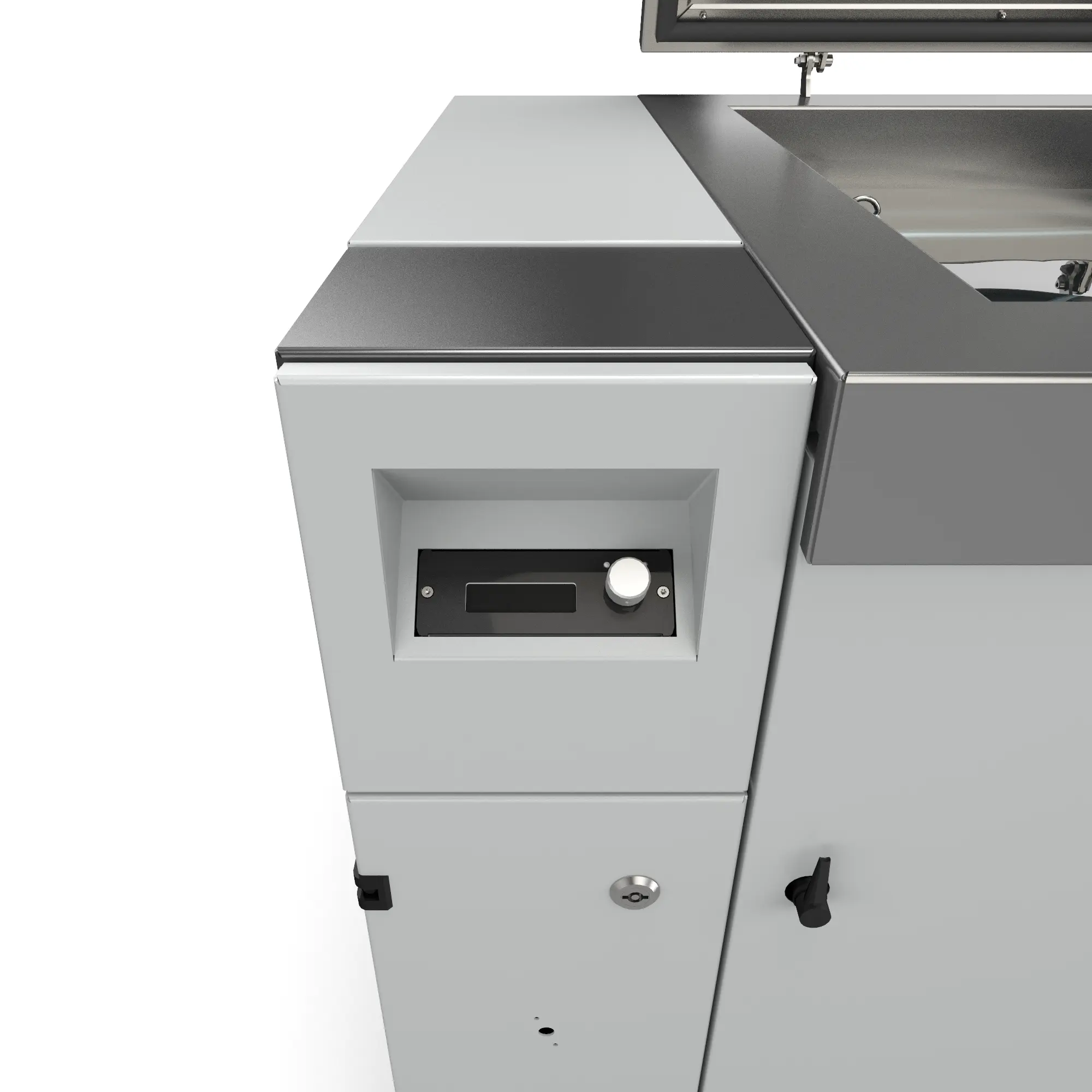 La scie pour tuyaux convient à la production d‘échantillons pour les essais de pression de fluage, de chute de bille, pour le retrait à chaud ou pour les essais avec le testeur au chlorure de méthylène. Les longueurs de tuyaux doivent être coupées conformément à la norme.