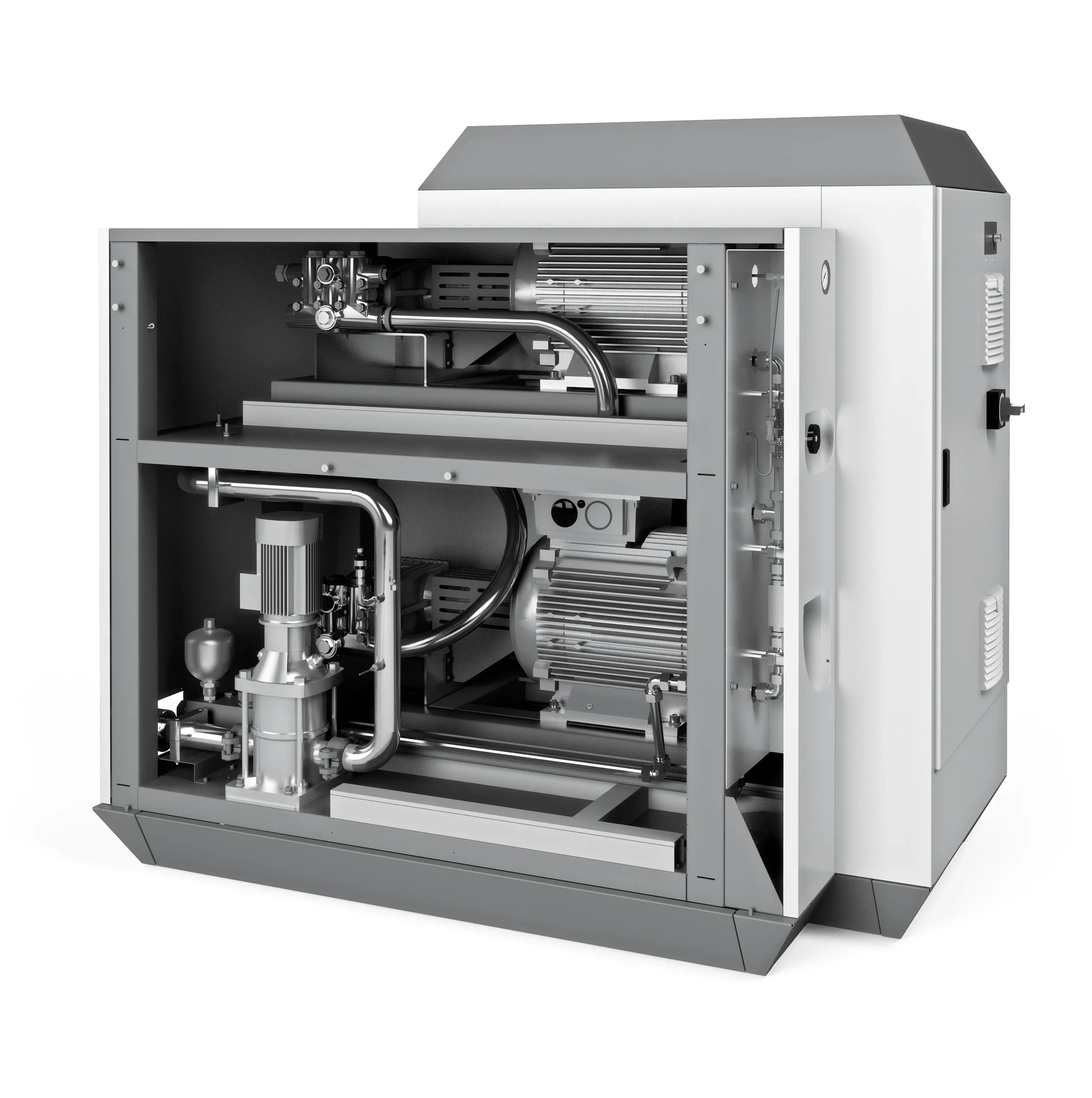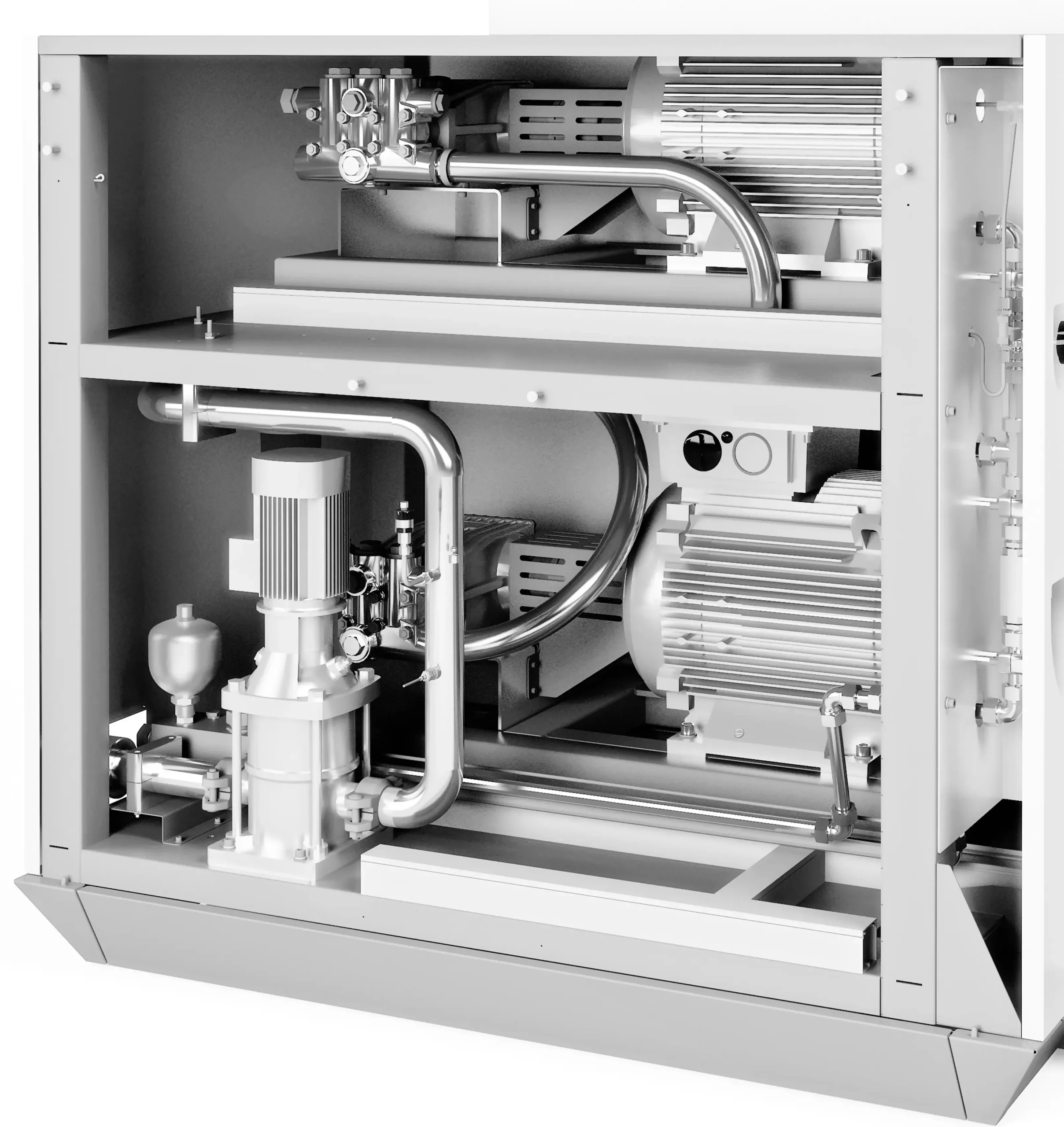 The burst pressure tester for pipes with large diameters is a further milestone for burst tests on large-volume samples. The fact that the frequency-controlled pump units can be combined in any number of ways enables flow rates of 120 l/min up to 100 bar or 720 l/min to 75 bar.