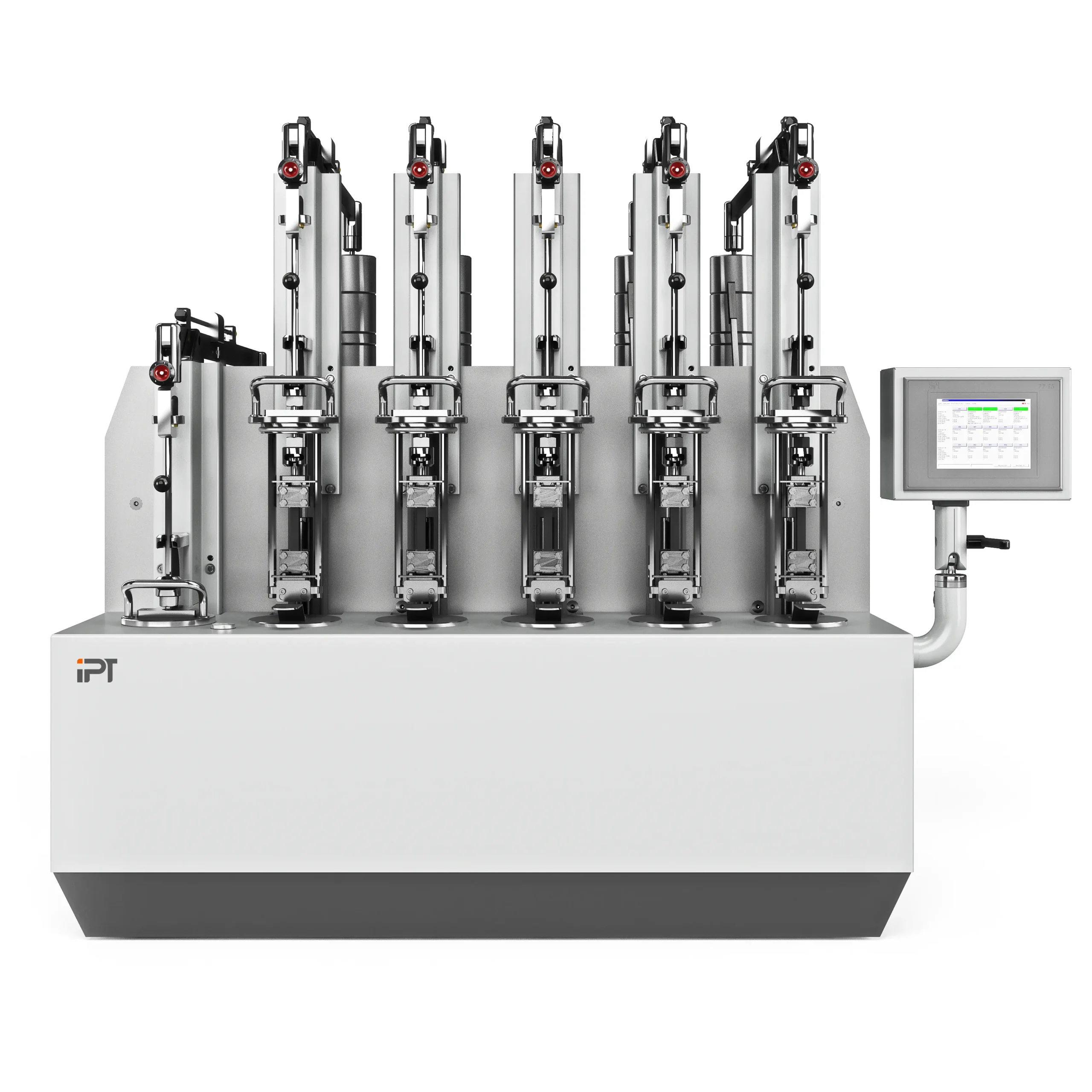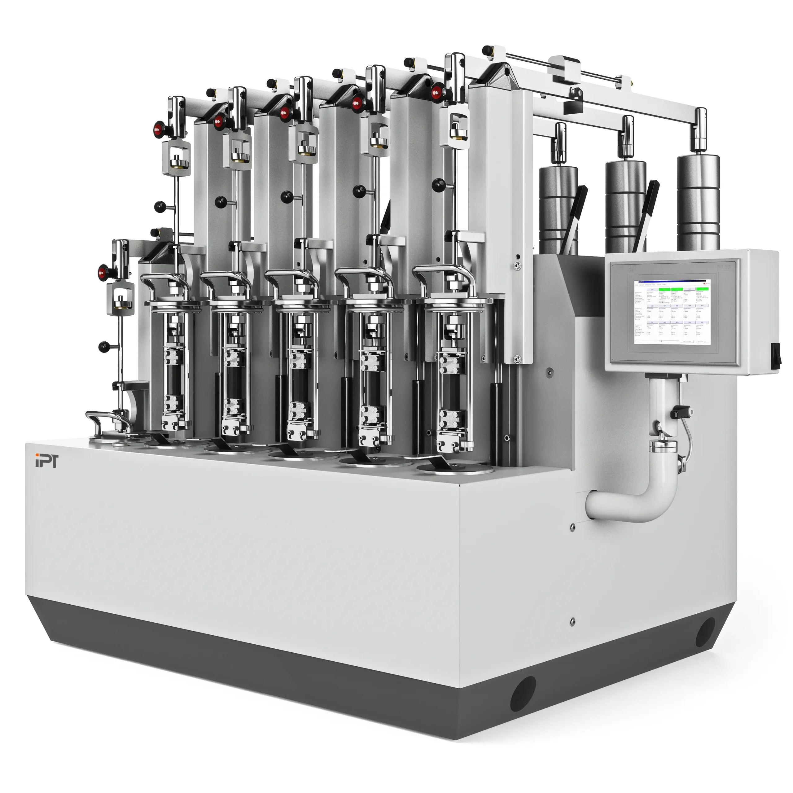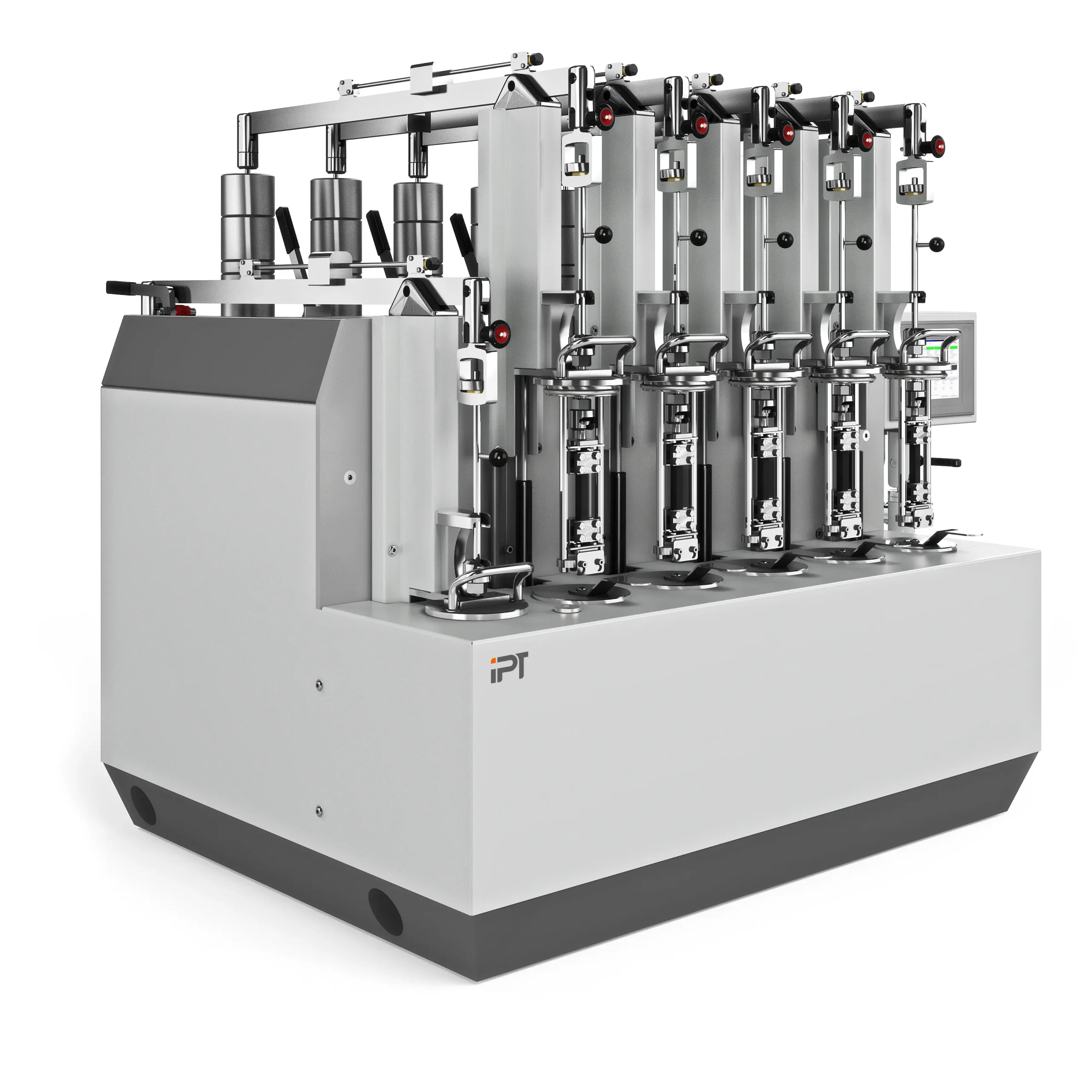 Chaque poste est ainsi surveillé individuellement. La sollicitation des échantillons a lieu par application manuelle du poids. Le testeur est conçu de manière à ce que chaque poste puisse être retiré sans effort du bassin de test.