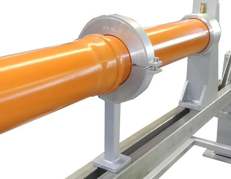 The combi test stand 1351 is used to carry out leak tests on waste water pipe systems in the diameter range DN 40 to DN 400. The modular design allows for step-by-step expansion in order to apply additional load types. These include: Loading with internal overpressure, angular deflection, deformation, shear load and external overpressure. The load types are described in the relevant standards and guidelines.