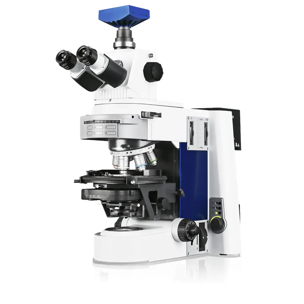 Conformément à la procédure de détermination du taux de pigments ou de noir de carbone dans les tubes, raccords tubulaires et matières à mouler en polyoléfine, un microscope est nécessaire pour étudier les particules et agglomérations dans l’échantillon. Grâce à l’appareil photo numérique, les images du microscope sont numérisées à des fins d’analyse, de documentation et d’archivage. L’appareil photo numérique est livré avec un logiciel de traitement d’image et un ordinateur.