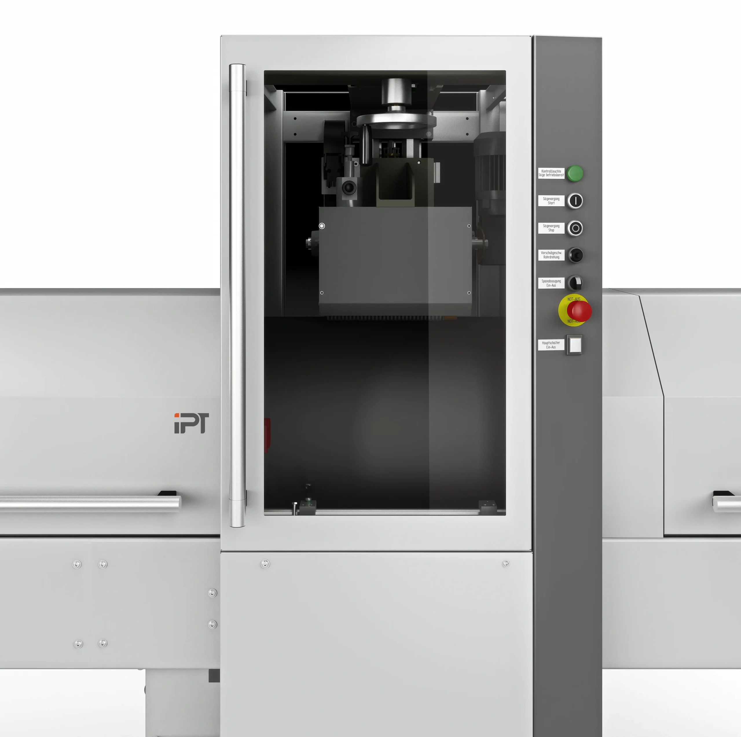 Required samples can be precisely cut to length using the IPT pipe saw. Our main focus when designing the saw was on the safety of the operating user. The device is safely housed and components that can be opened are secured through safety switches.